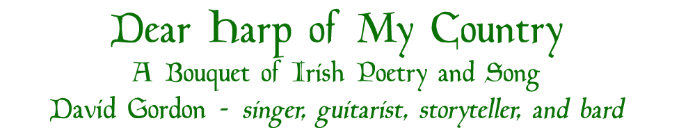 David also sings favorite 18th and 19th Century folk songs including : Whiskey in the Jar; The Water is Wide; and By The Rising of the Moon. Plus a surprising encore about smiling Irish eyes!